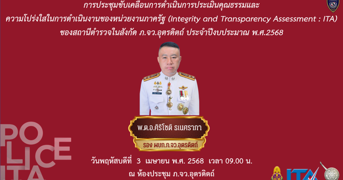ประชุมขับเคลื่อนการดำเนินการประเมินคุณธรรมและความโปร่งใสในการดำเนินงานของหน่วยงานภาครัฐ(Integrity and Transparency Assessment : ITA) ของสถานีตำรวจในสังกัด ภ.จว.อุตรดิตถ์ ประจำปีงบประมาณ พ.ศ.2568 ครั้งที่ 2